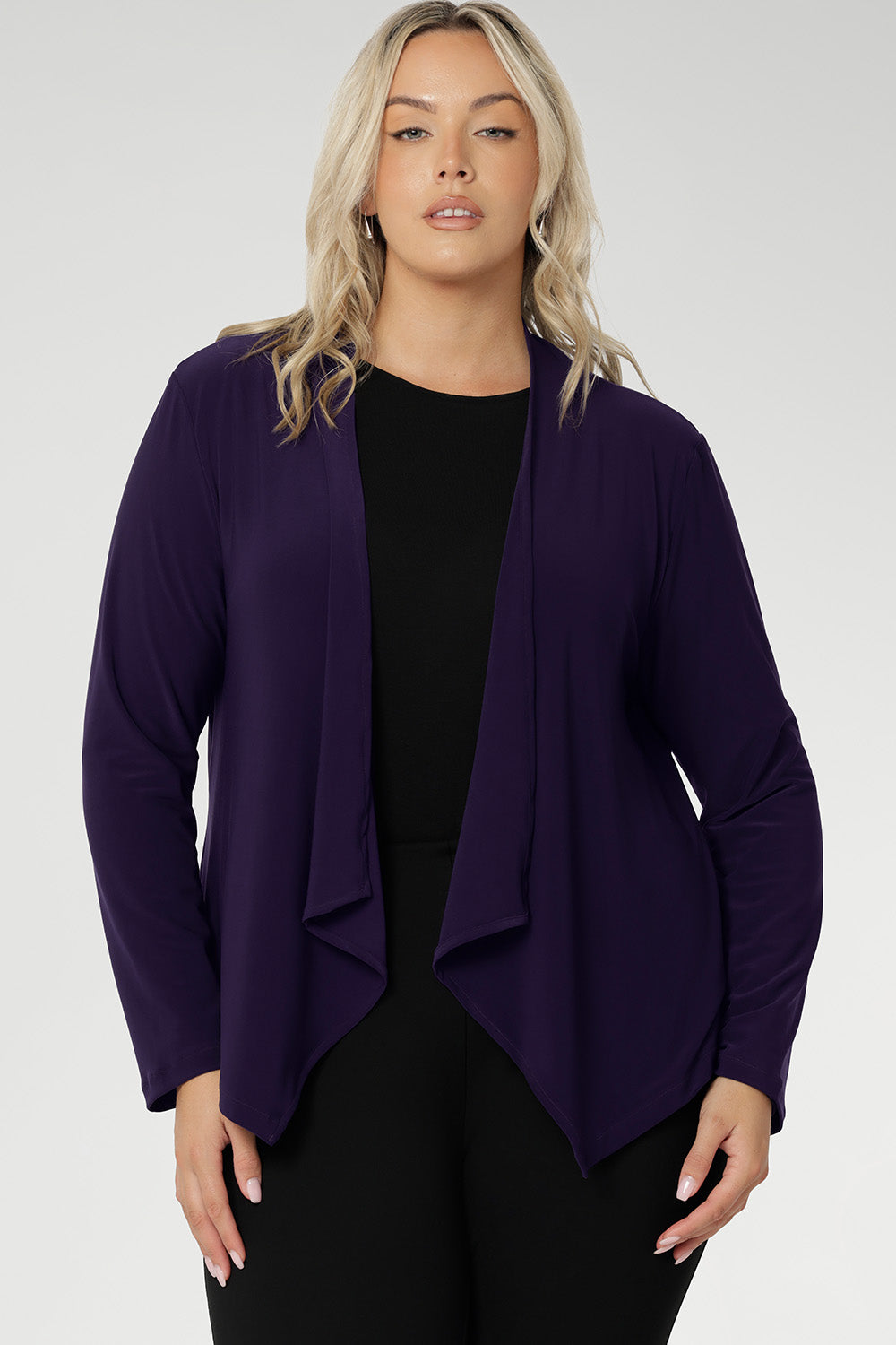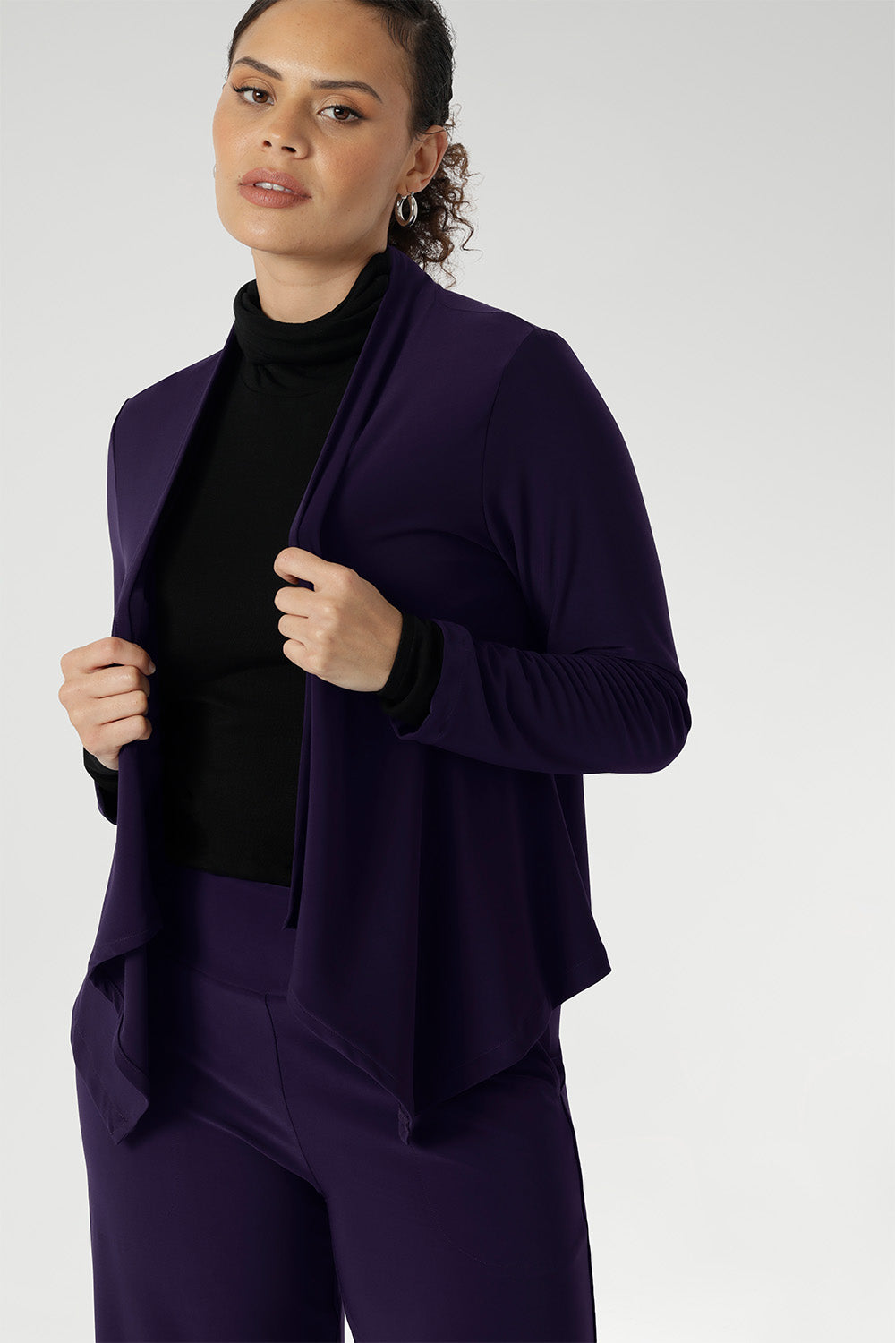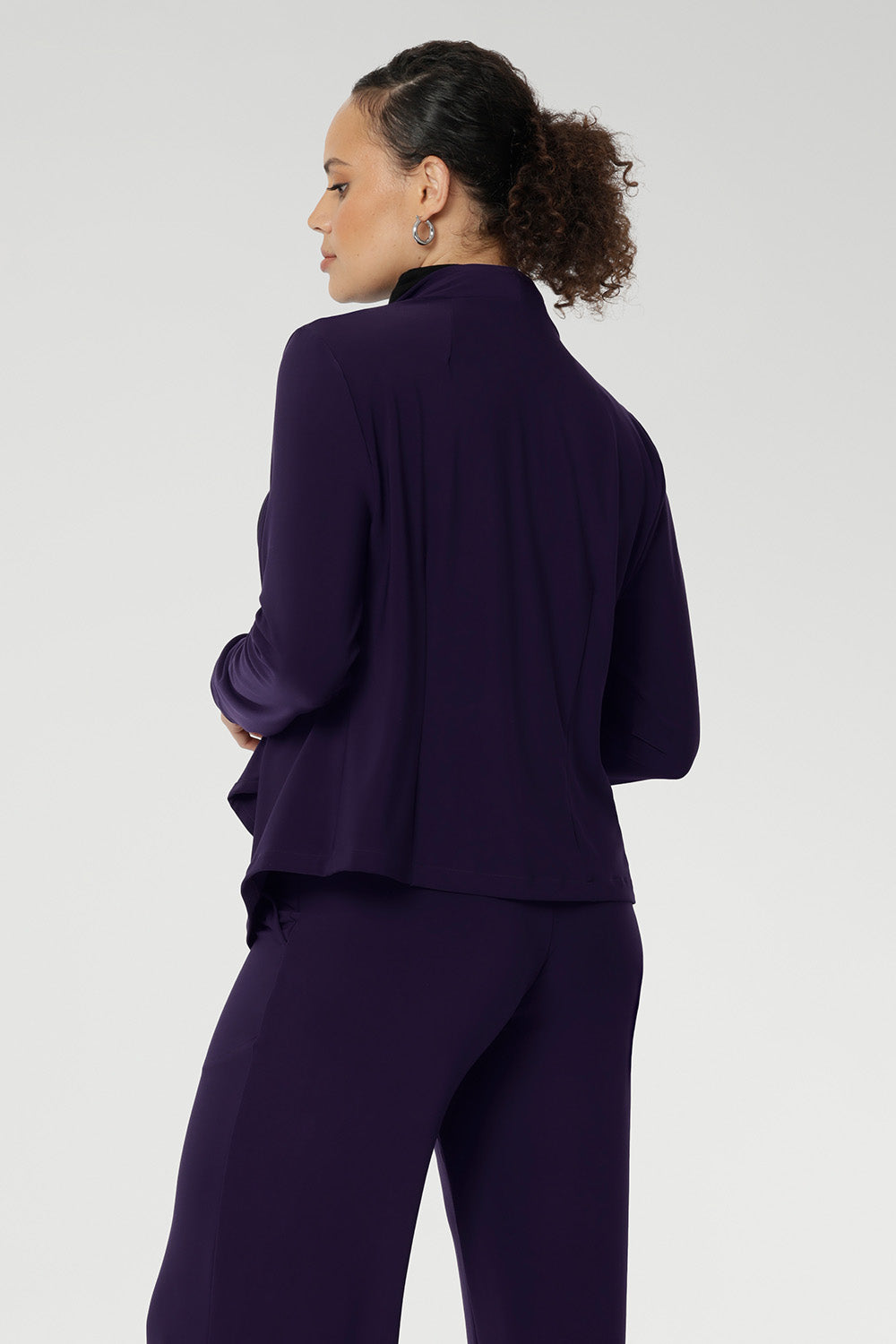 Crafted from our premium heavy-weight dry touch stretch jersey, Mikey is a jacket-like cardigan, softly tailored with an open, waterfall front, offering a chic, sophisticated look that transitions you seamlessly from work to after-hours events.