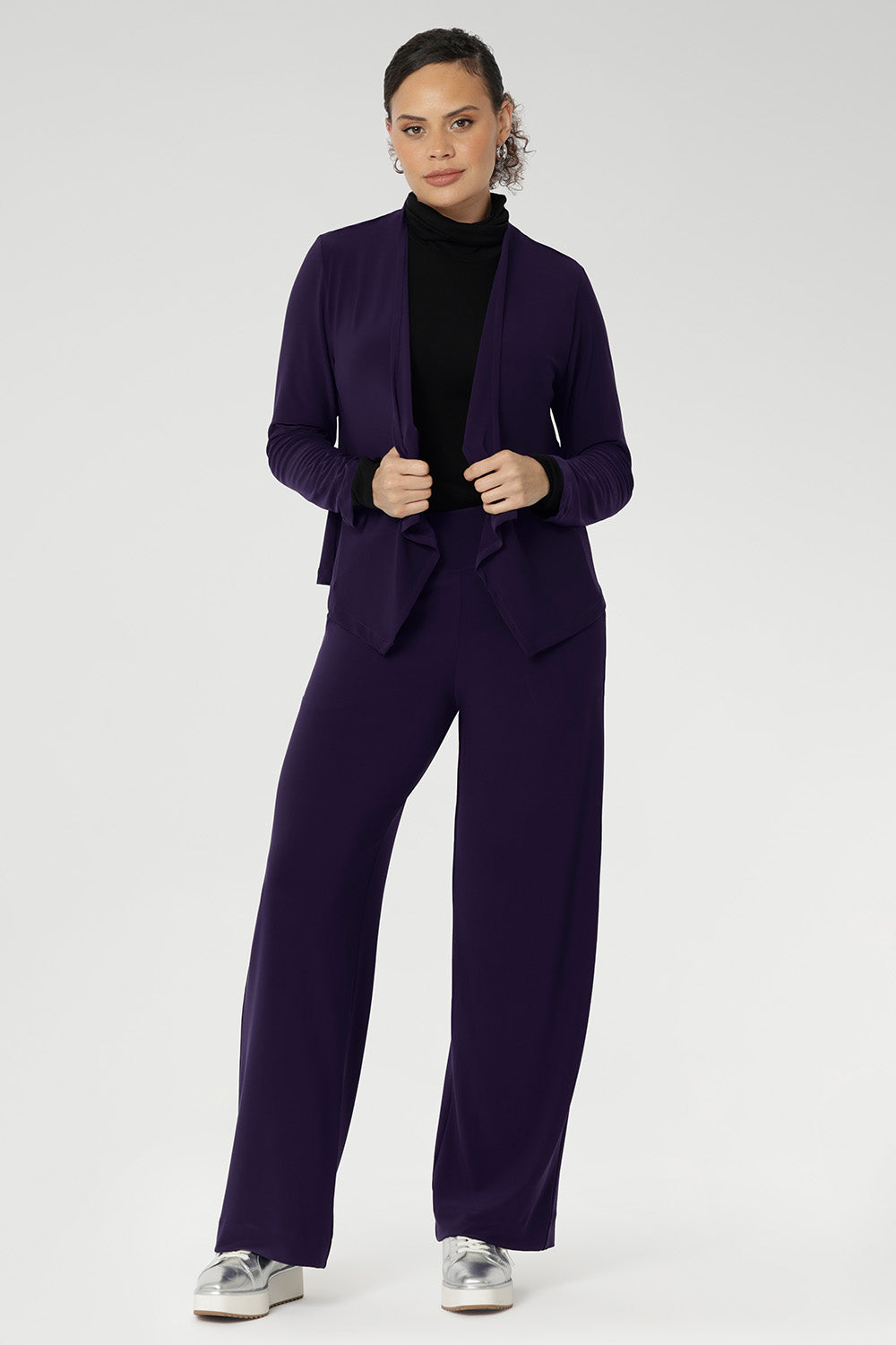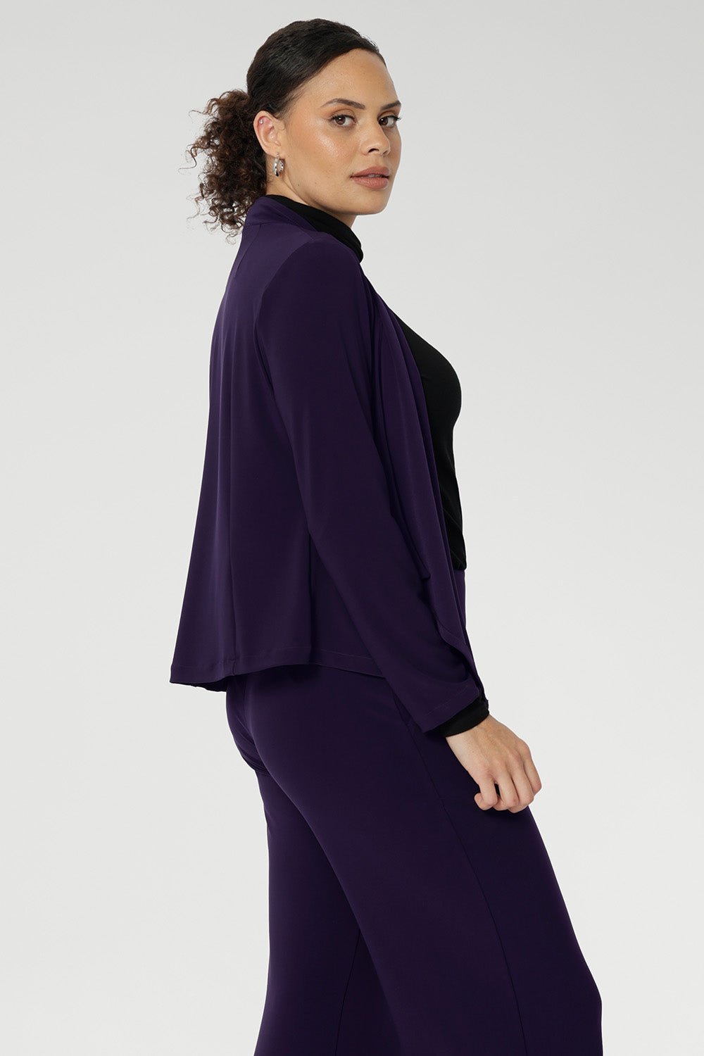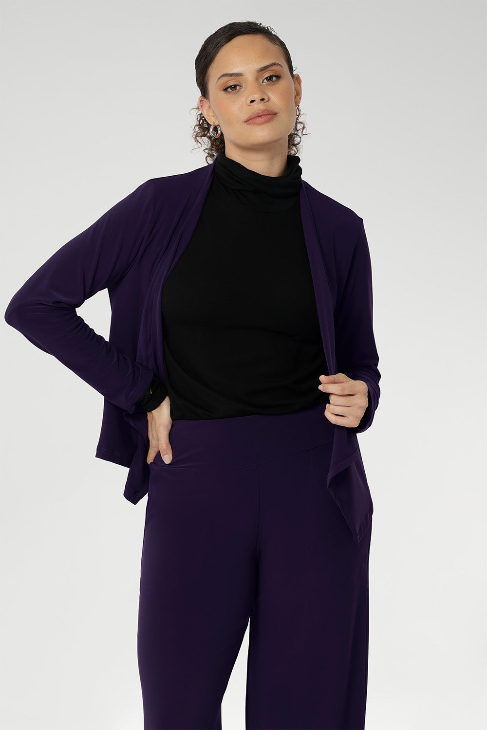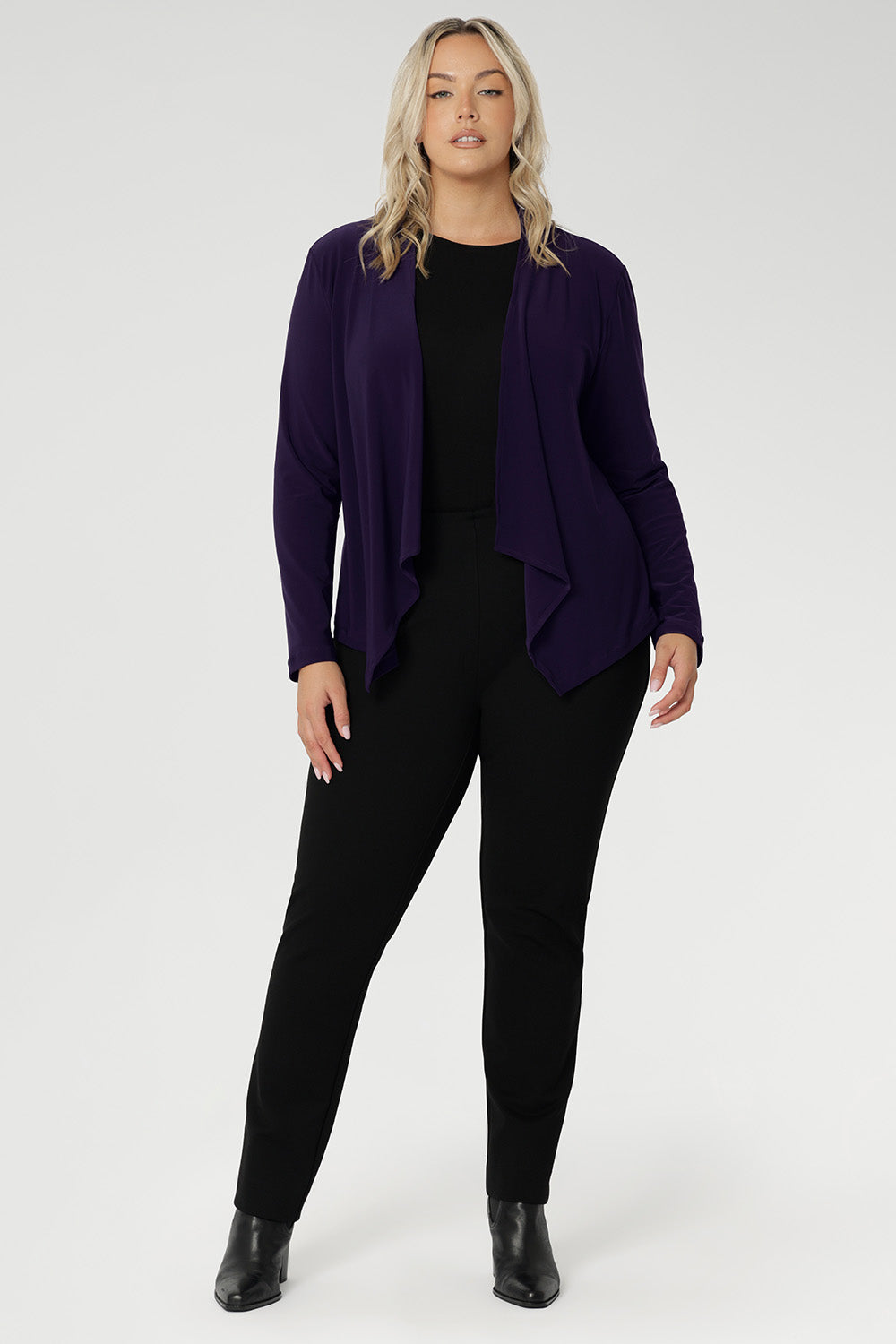 Crafted from our premium heavy-weight dry touch stretch jersey, Mikey is a jacket-like cardigan, softly tailored with an open, waterfall front, offering a chic, sophisticated look that transitions you seamlessly from work to after-hours events.