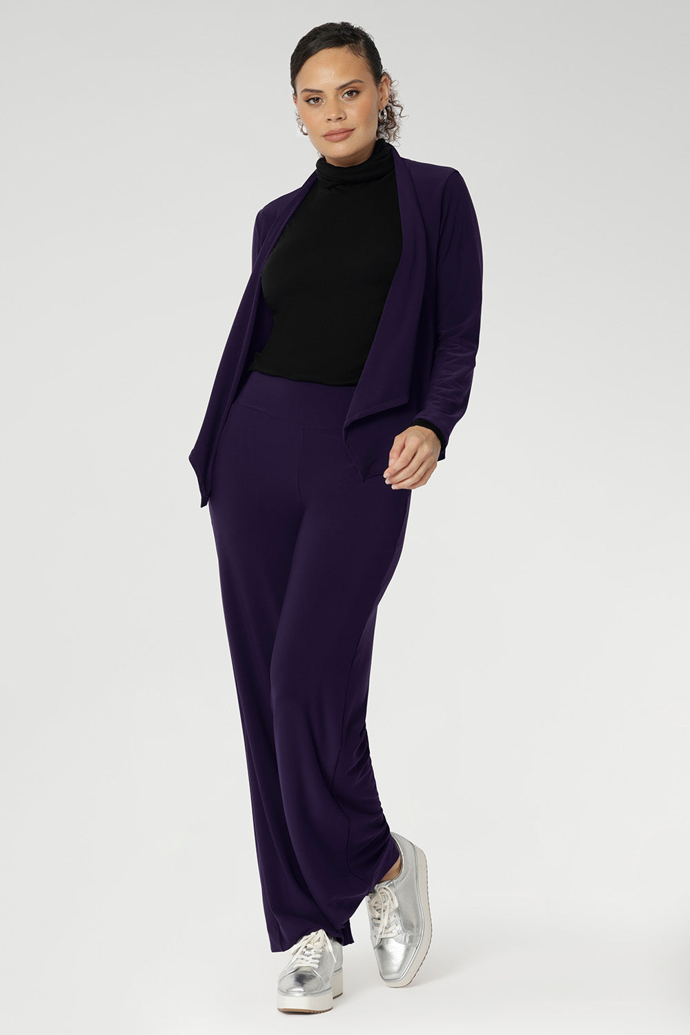 This is a wardrobe essential for me, a light, fluid black jacket to quickly elevate any top or just provide an extra layer for a bit more warmth. Perfect timing with the purple Munroes. I've always like purple and black together and now with L&F I have some good quality pieces.