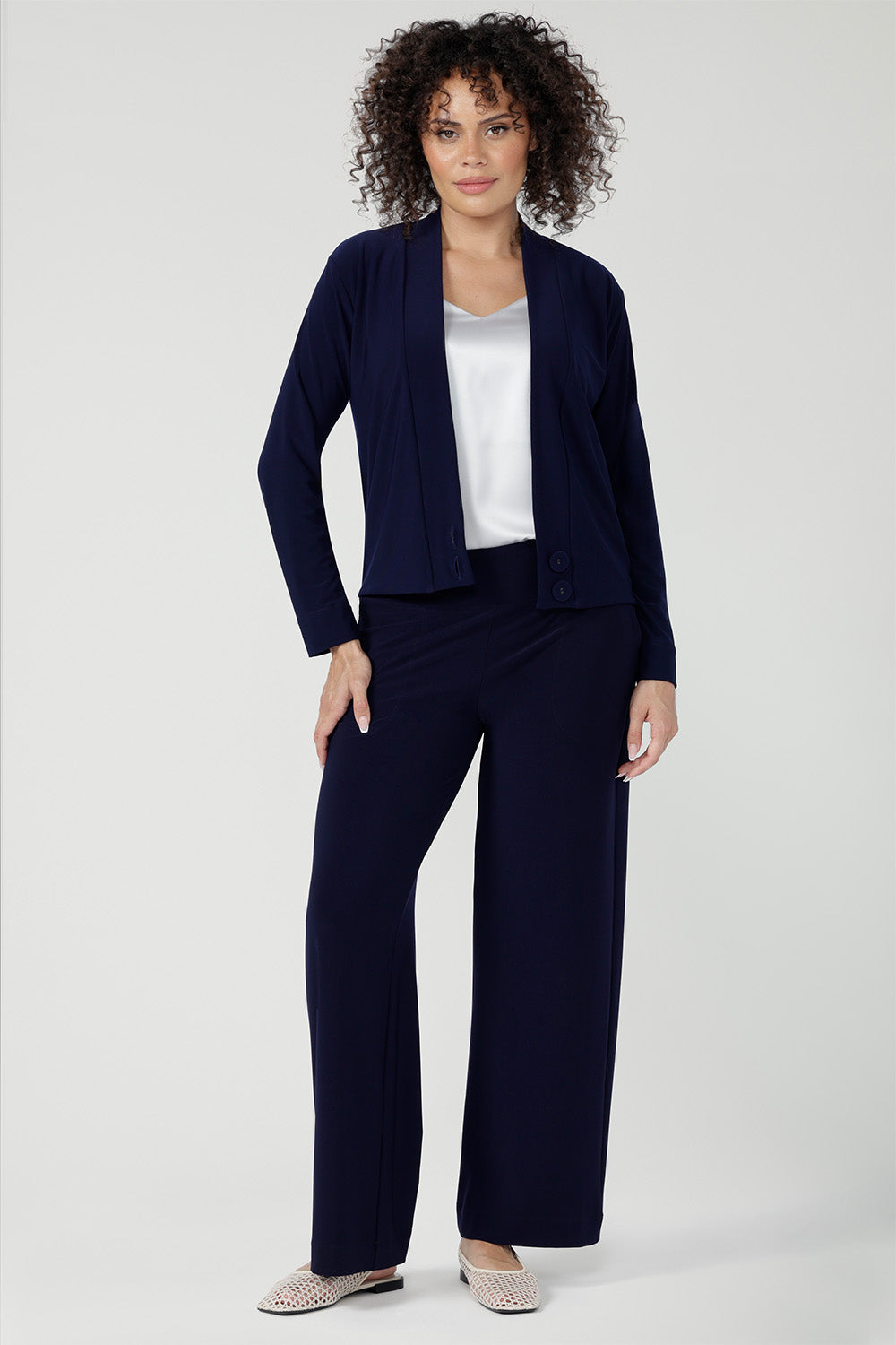Crafted from our premium heavy-weight dry-touch stretch jersey fabric, Sandro is a jacket-like cardigan designed to blend form and function - offering effortless sophistication that works from office meetings to after-hours events.