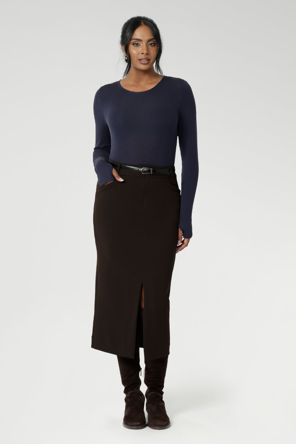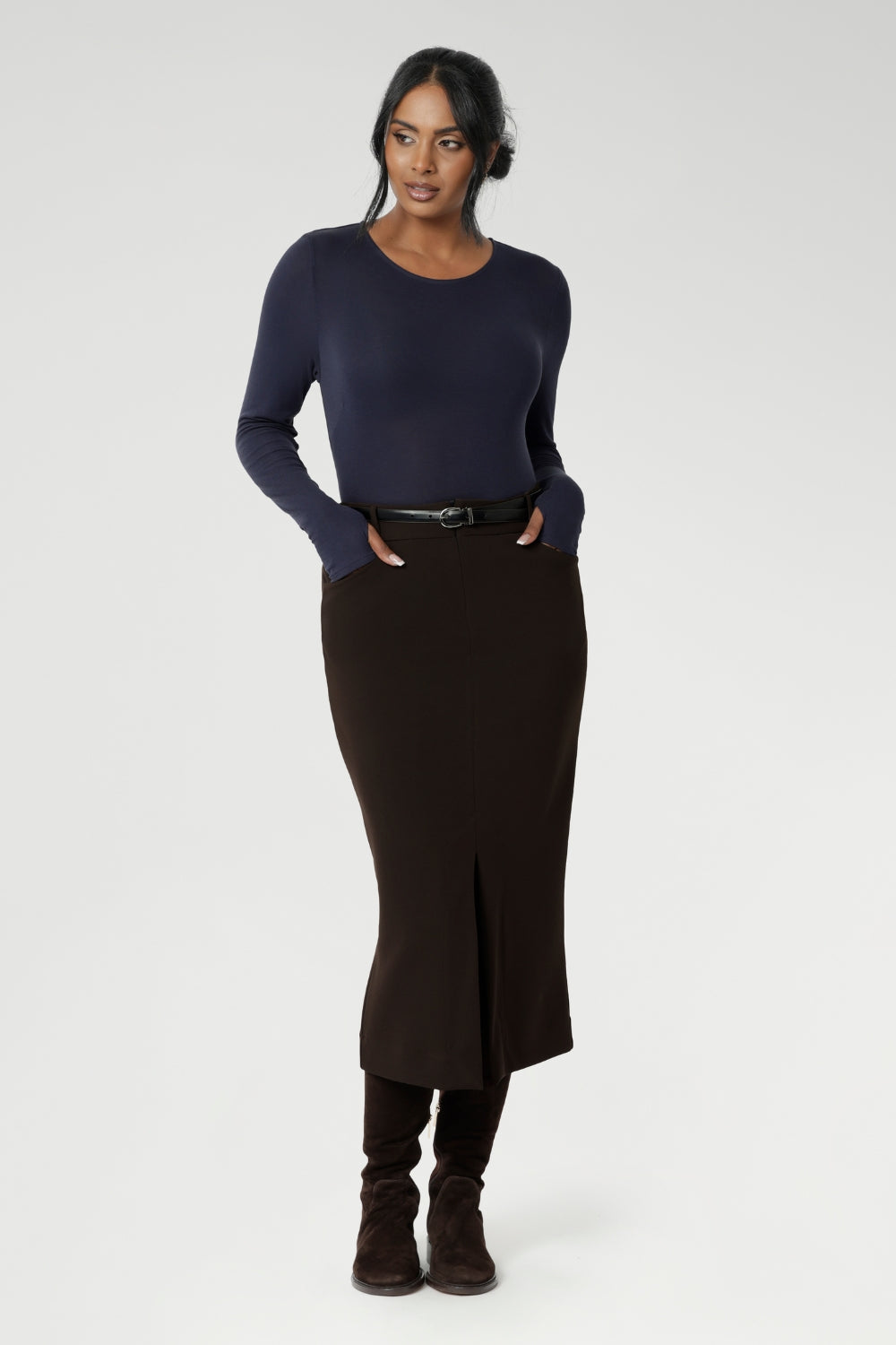 Aaron Midi Skirt in Cocoa