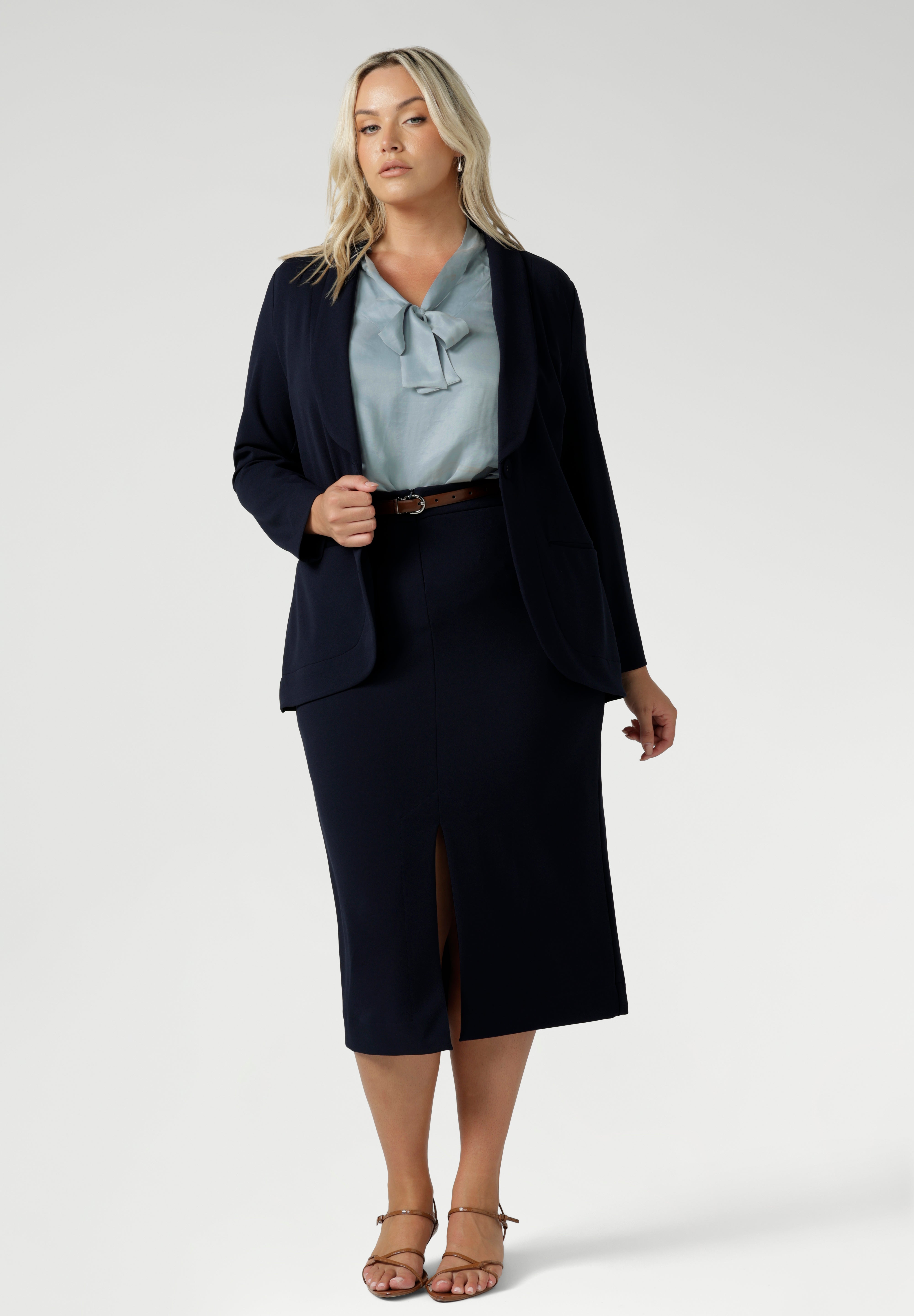 Crafted from our luxe, body-contouring scuba jersey, the Aaron Skirt, is a part of our Soft Suiting collection and pairs perfectly with the Merit Blazer and Pennyworth Vest for a modern, tailored look.