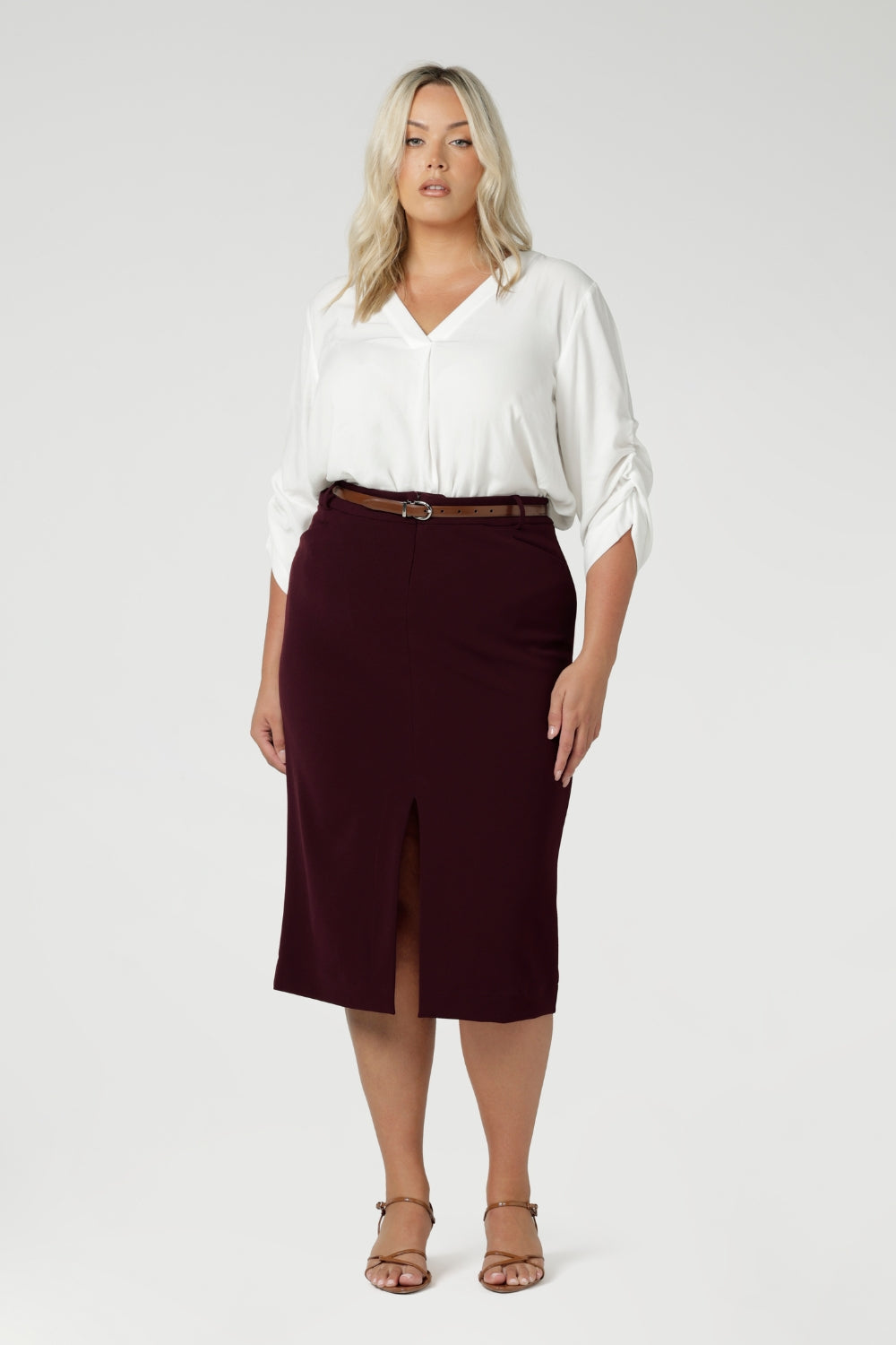 Aaron Midi Skirt in Wine