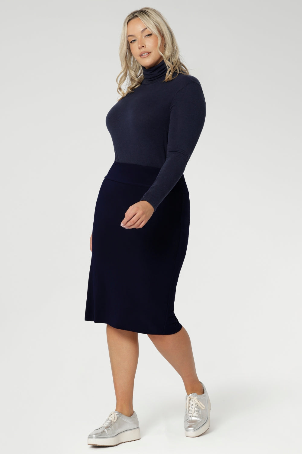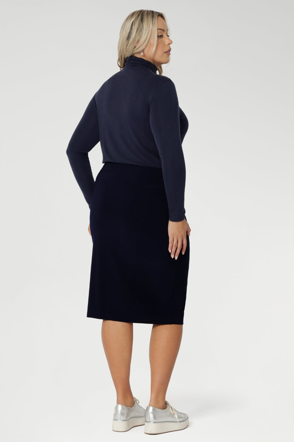 Crafted from our signature dry-touch stretch jersey, the Andi Tube Skirt offers a comfortable, streamlined fit with an easy pull-on, elasticated waist. This versatile midi skirt is perfect for effortless styling from work to weekend.