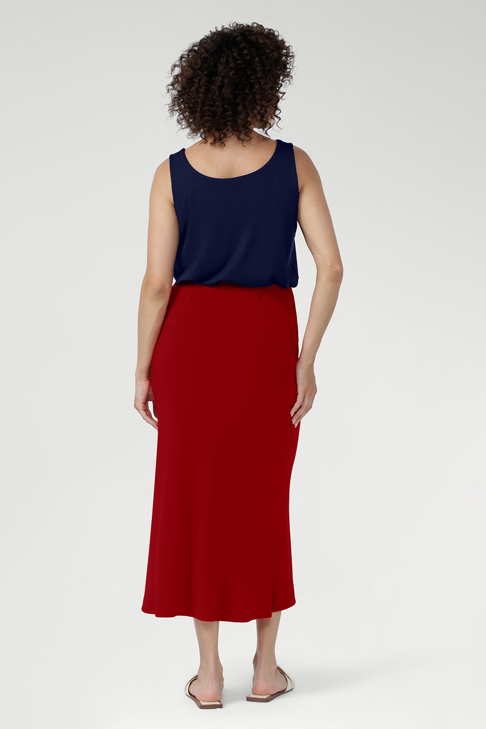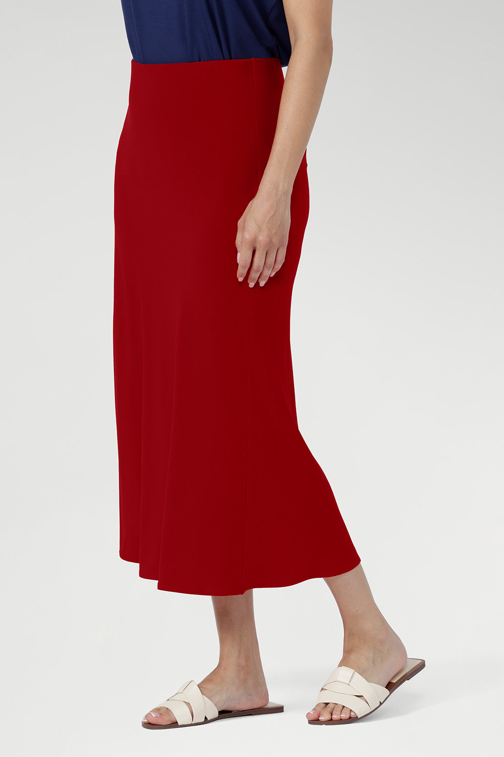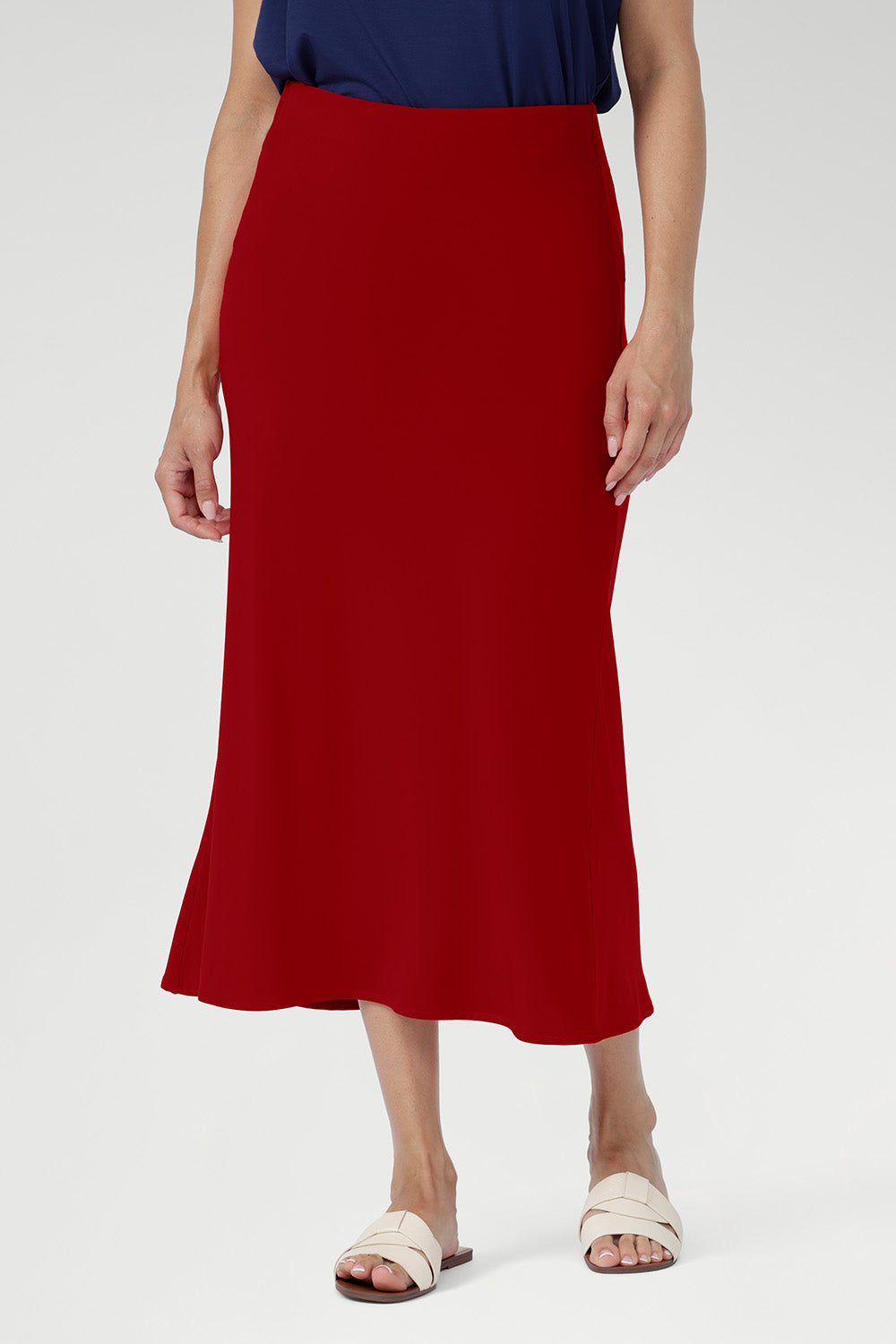 Crafted from our signature premium dry-touch jersey, the Asher Skirt in Red combines sleek sophistication with effortless comfort. Designed with a soft pull-on waistband and a gently flared A-line silhouette, it drapes fluidly for a flattering fit that moves with ease. The bold red hue adds a confident pop of colour, making it a standout piece for any occasion. Pair with the matching top for a coordinated look or a simple tee for relaxed polish. Made in Australia with integrity.