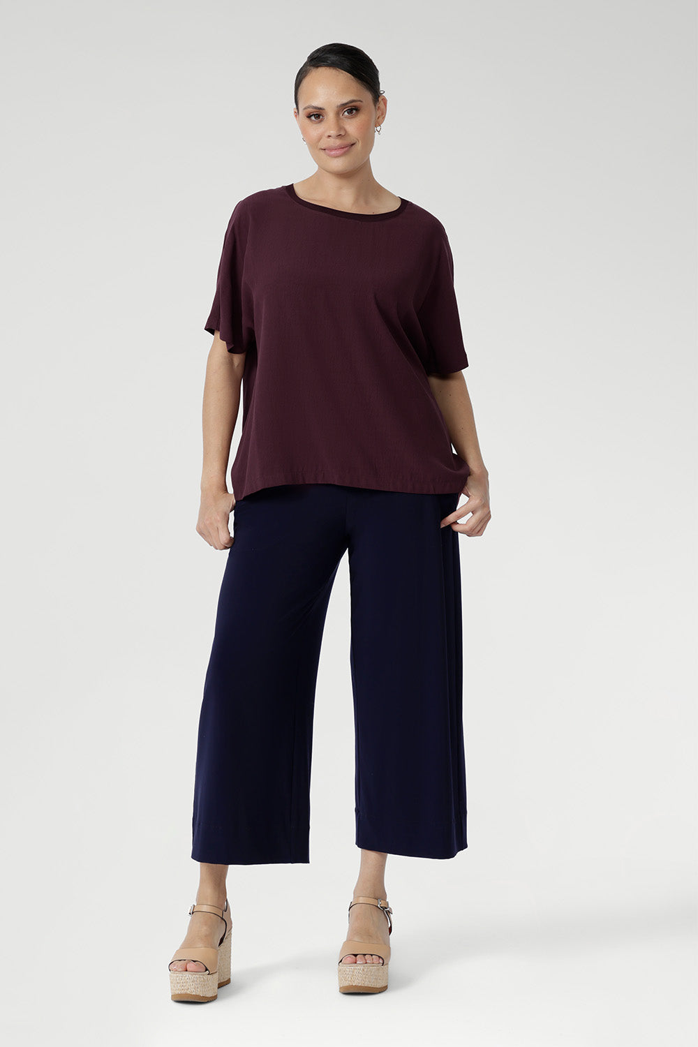 Our best-selling Monroe Pant is crafted from luxurious jersey that drapes beautifully and feels comfortable all day. Designed with a pull-on fit, deep double-layer waistband, side pockets, and straight-leg cut, it’s perfect for pairing with items from our fluid-suiting collection. Australian made and available in sizes 8-24, with three convenient lengths.