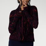 • The Luxe Lava print features shades of red, purple, and burgundy