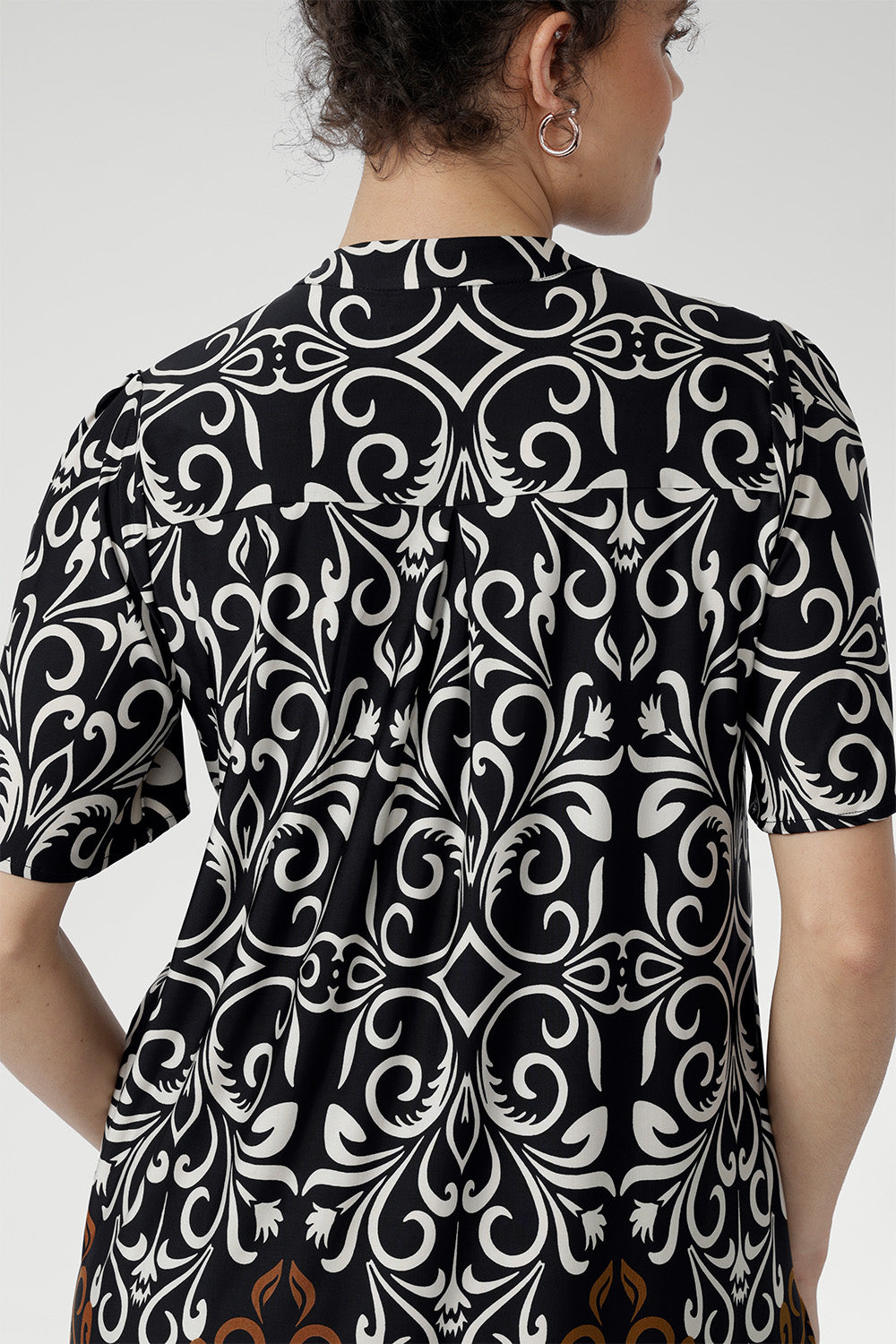 • Relaxed tunic silhouette, falls below the hip