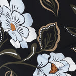 • Bold, oversized floral print with details in ice blue and olive green hues