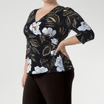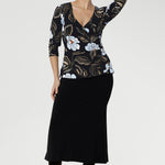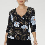 Crafted from our signature dry-touch stretch jersey, the Kyle Top is designed with professional style and all-day comfort in mind. Featuring a wrap bodice, 3/4 length sleeves, and a soft peplum waist seam that adds sophistication, and can be tucked into high-waist pants for a different look.