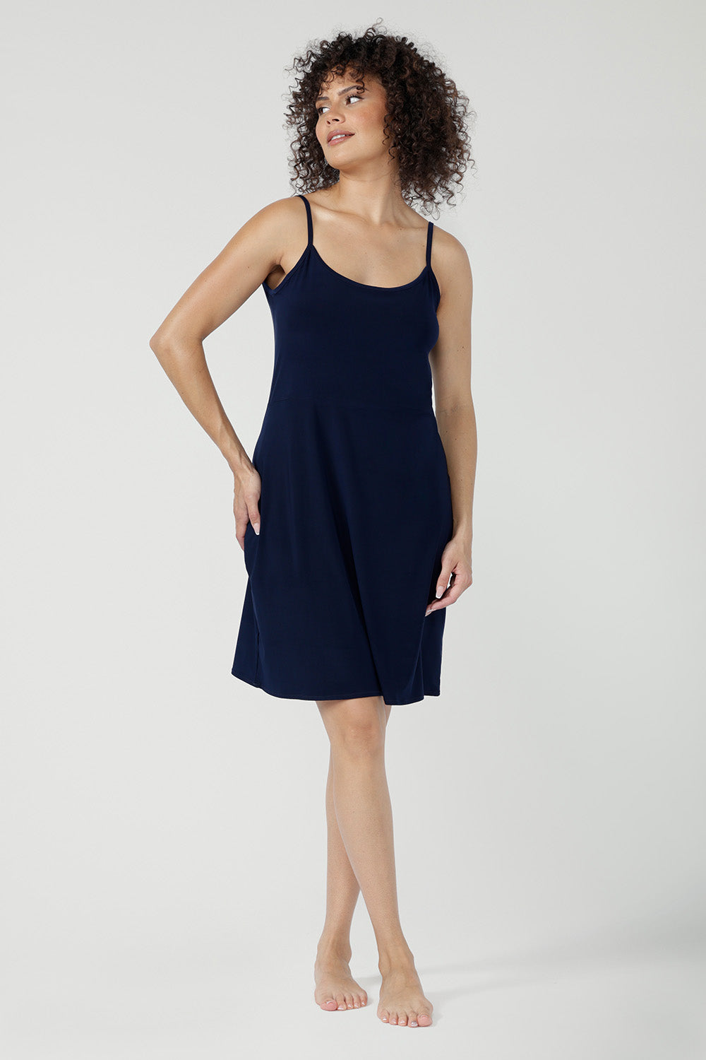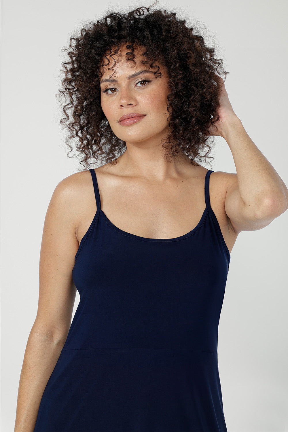 Designed to smooth and layer effortlessly under dresses and separates, the Myah Reversible Mini Slip is a versatile wardrobe essential. Featuring a reversible scoop or V neckline, it adapts to your styling needs with ease. Crafted from soft, slinky jersey with gentle stretch, it offers a lightweight, silky feel for a smooth, flattering finish.