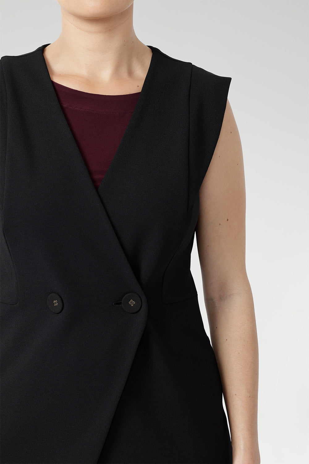 Crafted from luxe, body-contouring scuba jersey, the Vienna Vest is a double-breasted vest with extended shoulder and self-tie removable belt to cinch in the waist. Sharpen up your wardrobe with this versatile addition to your Soft Suiting collection.